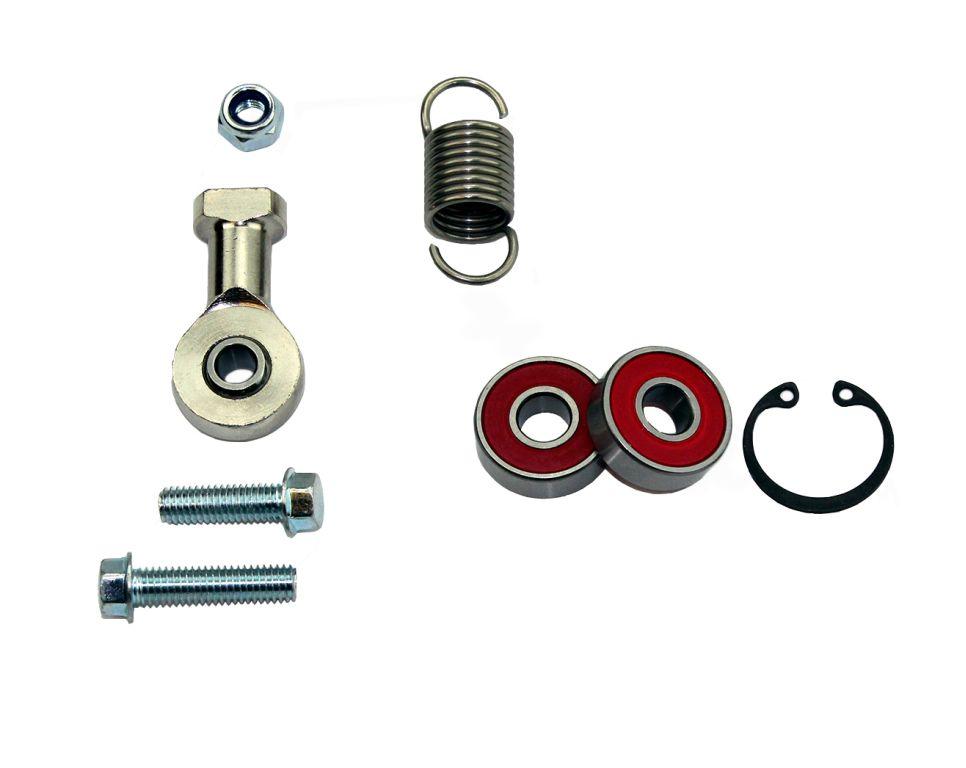 - Includes stainless steel return spring, sealed pivot bearings, heavy-duty threaded Heim joint, and replacement hardware.