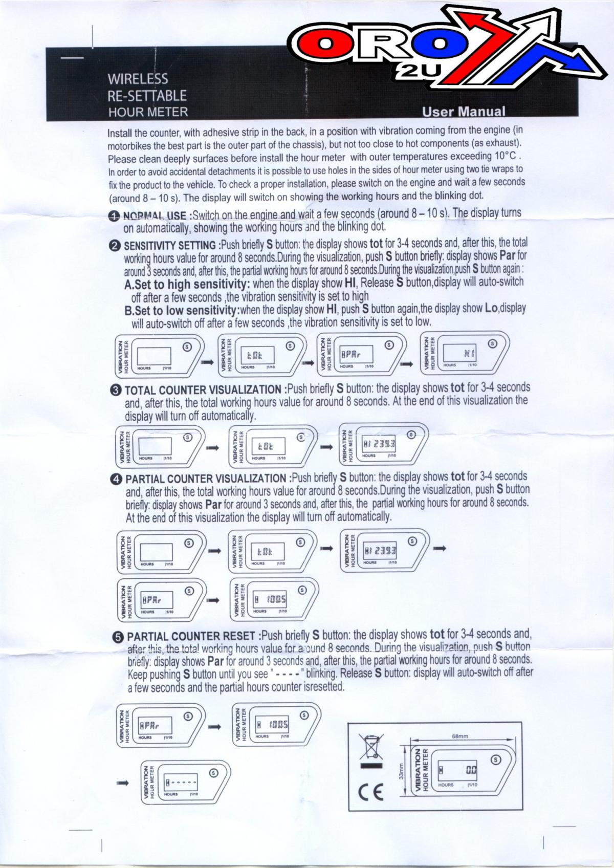 Dirt Racing Hour Meter Digital Wireless Up-12678bk