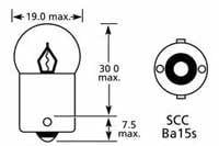 Bulb 6v 5w SCC BA15s Side or Tail Single Filament, 15mm diameter base, single contact OEM. Lucas 205