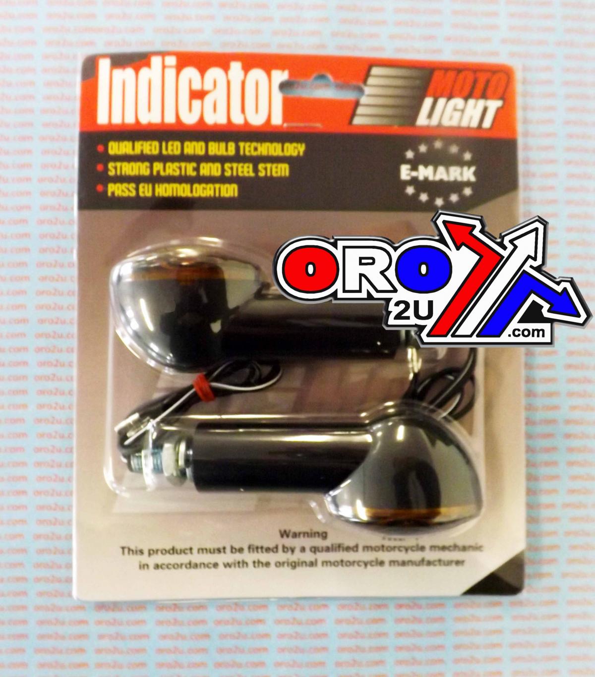 40mm STEM INDICATORS with Dark Smoke lens, black housing and bulb included. Sold in pairs. E MARKED.