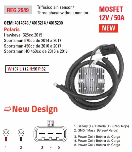 44-6335.AHRegulator for various Polaris ATV models (2014-2017), designed to meet or exceed OEM specifications. This high-quality replacement part is capable of handling increased power loads and is rigorously tested for 100% reliability. Please note: electrical parts are non-returnable.