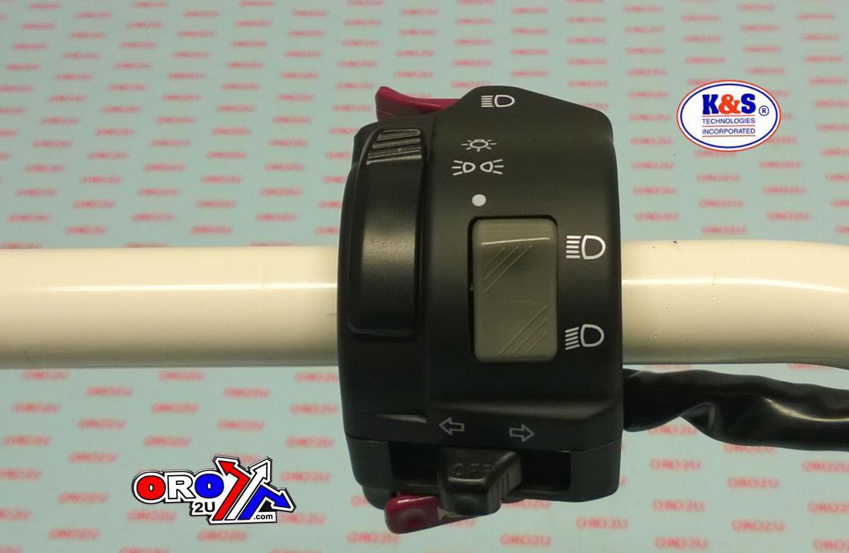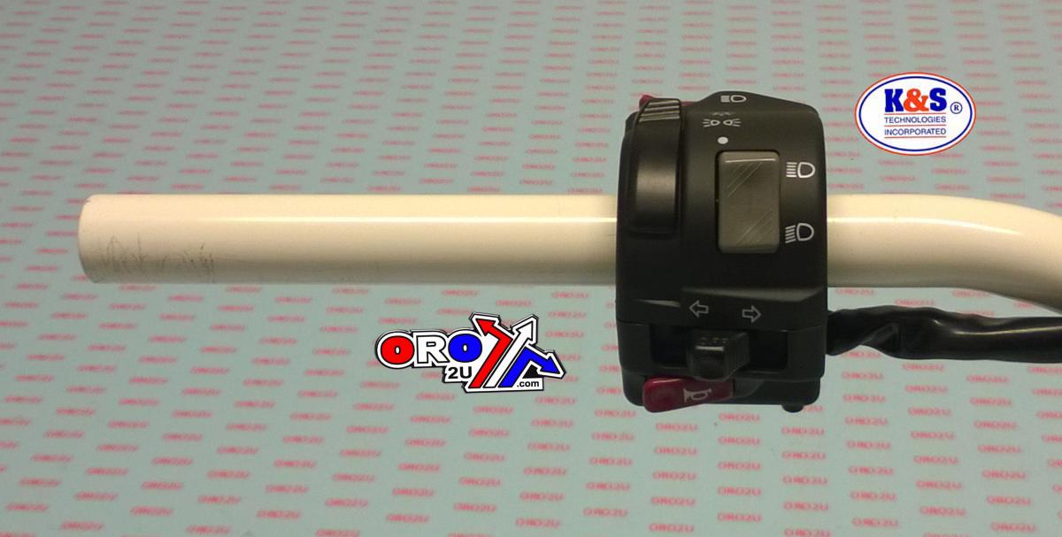 The K&S universal handlebar switchpacks are designed as an OEM style replacement switch. Some switches may be an exact replacement where others may be slightly different but can still be utilized. All switchpacks come with sufficient length of wiring and will fit ALL 7/8" (22mm) handlebars. Switchpack includes turn signals, headlight on/off,