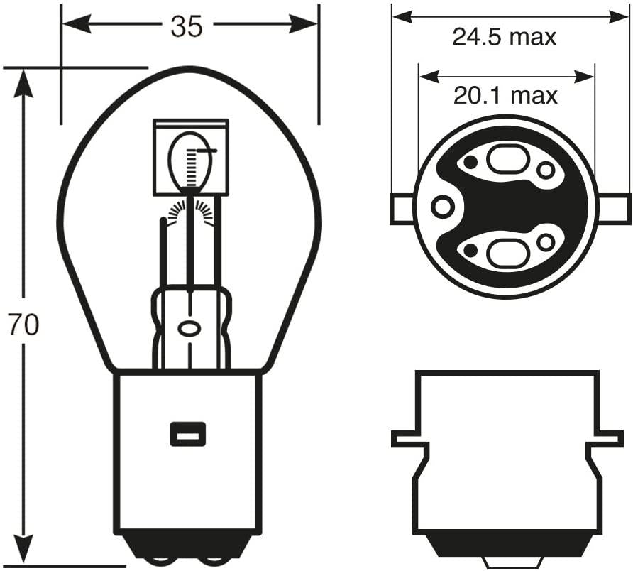 44-781.EACHThis 12V 45/40W headlight bulb features a BA20d base, commonly referred to as the Bosch fitting, and is designed for various motorcycle and scooter headlight applications.