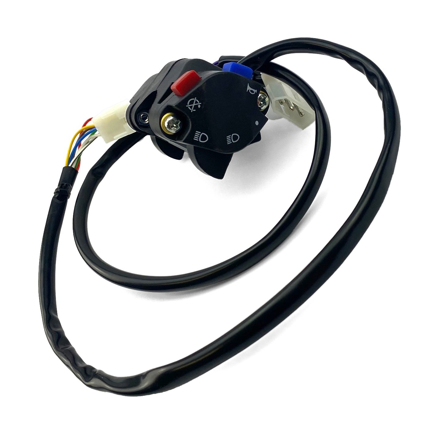 - Functions: High/low beam, horn, kill switch, and turn signals (left and right).
