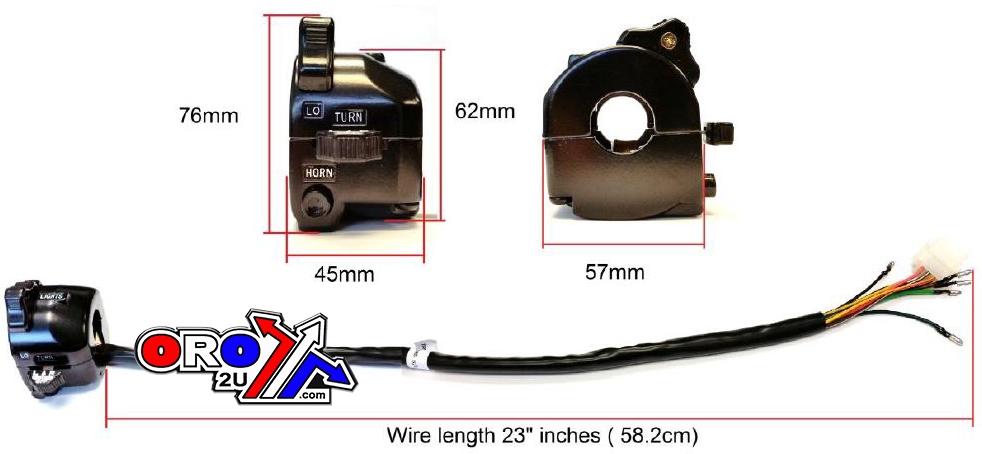 Comes with Aluminum Alloy Body and Matt Black Finish. Turn Signal Switch (Centre Push Cancelling), Head Lights (High/Low) and Horn.