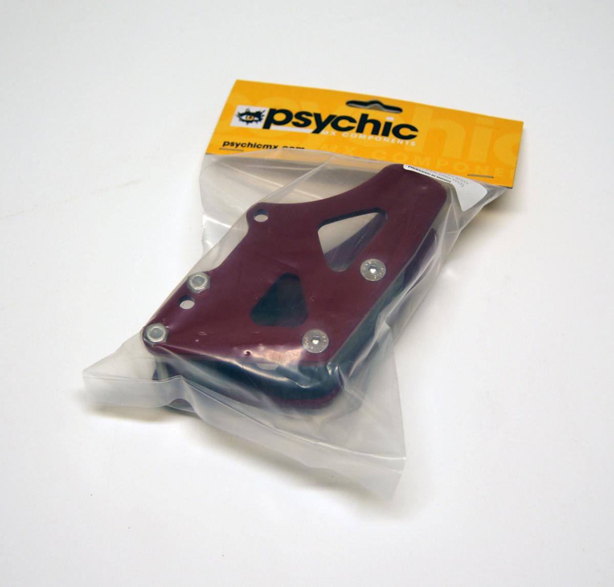 Psychic Chain Guides. Constructed from CNC machined high quality aluminium. Comes complete with a long wear chain guide and hardware.