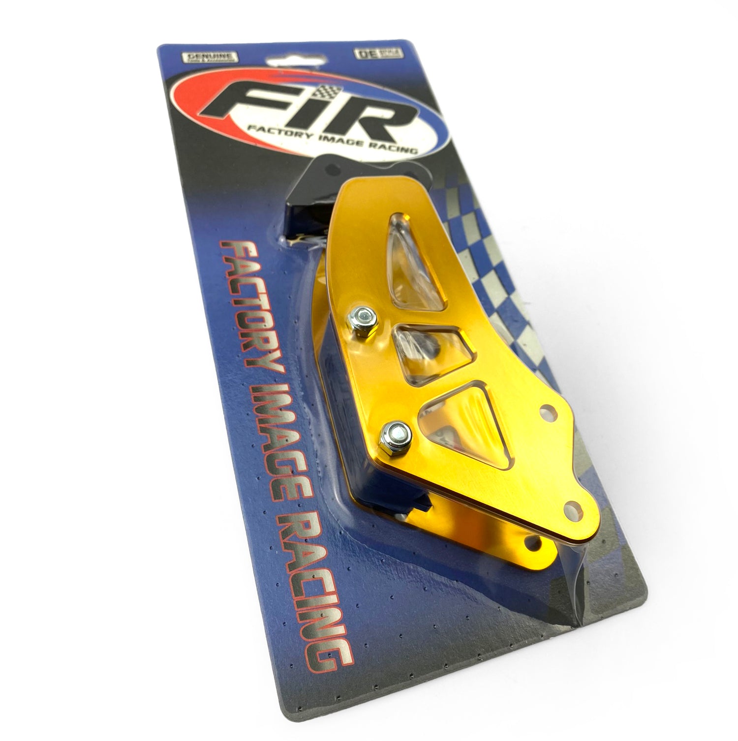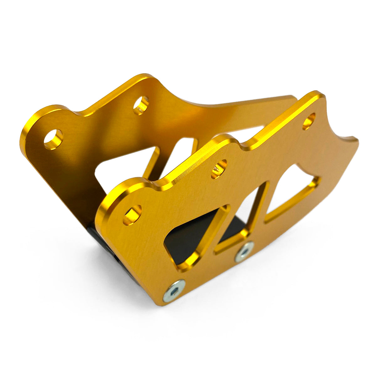 FACTORY IMAGE RACING Chain Guides. Constructed from CNC machined high quality aluminium. Comes complete with a long wear chain guide and hardware. Available in anodized gold colour.