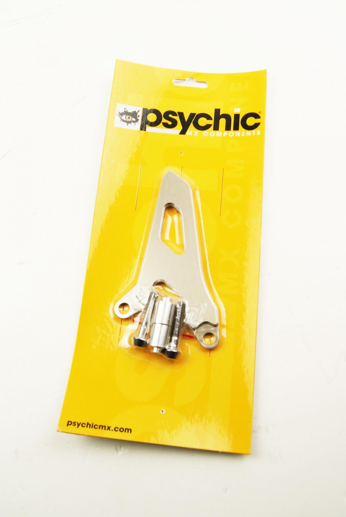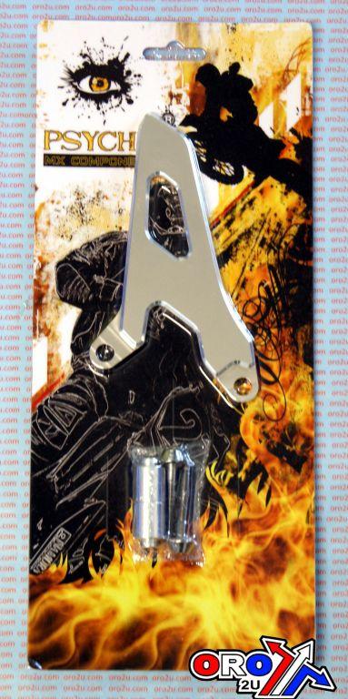 Psychic Sprocket Guards. Constructed from CNC machined high quality aluminium. Colour anodized with silver cut-out at 2-tone surface finish. Designed to keep mud out of the front sprocket area.