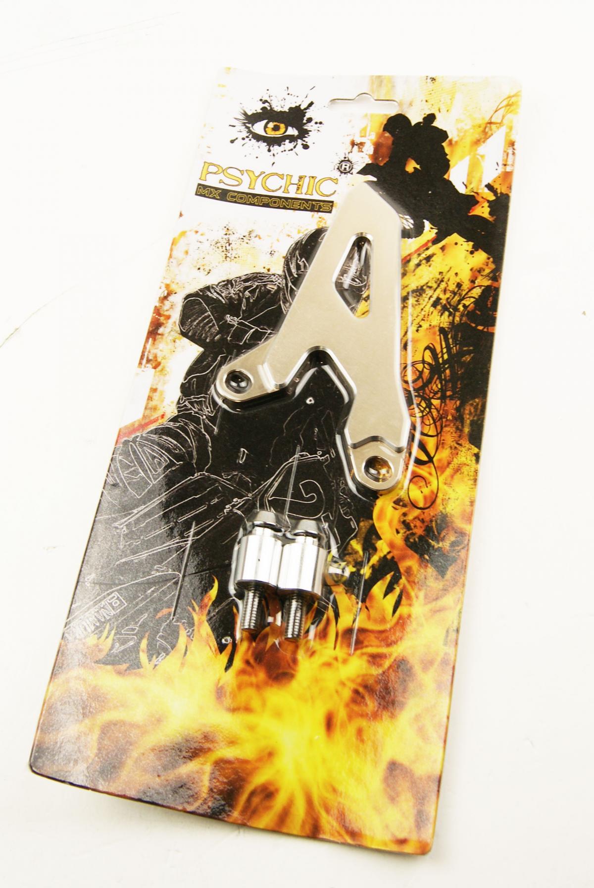 Psychic Sprocket Guards. Constructed from CNC machined high quality aluminium. Colour anodized with silver cut-out at 2-tone surface finish. Designed to keep mud out of the front sprocket area.