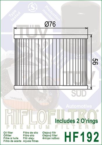 HiFlo Filters Oil Filter Hiflo HF192, Triumph 121-00-31-t0-301