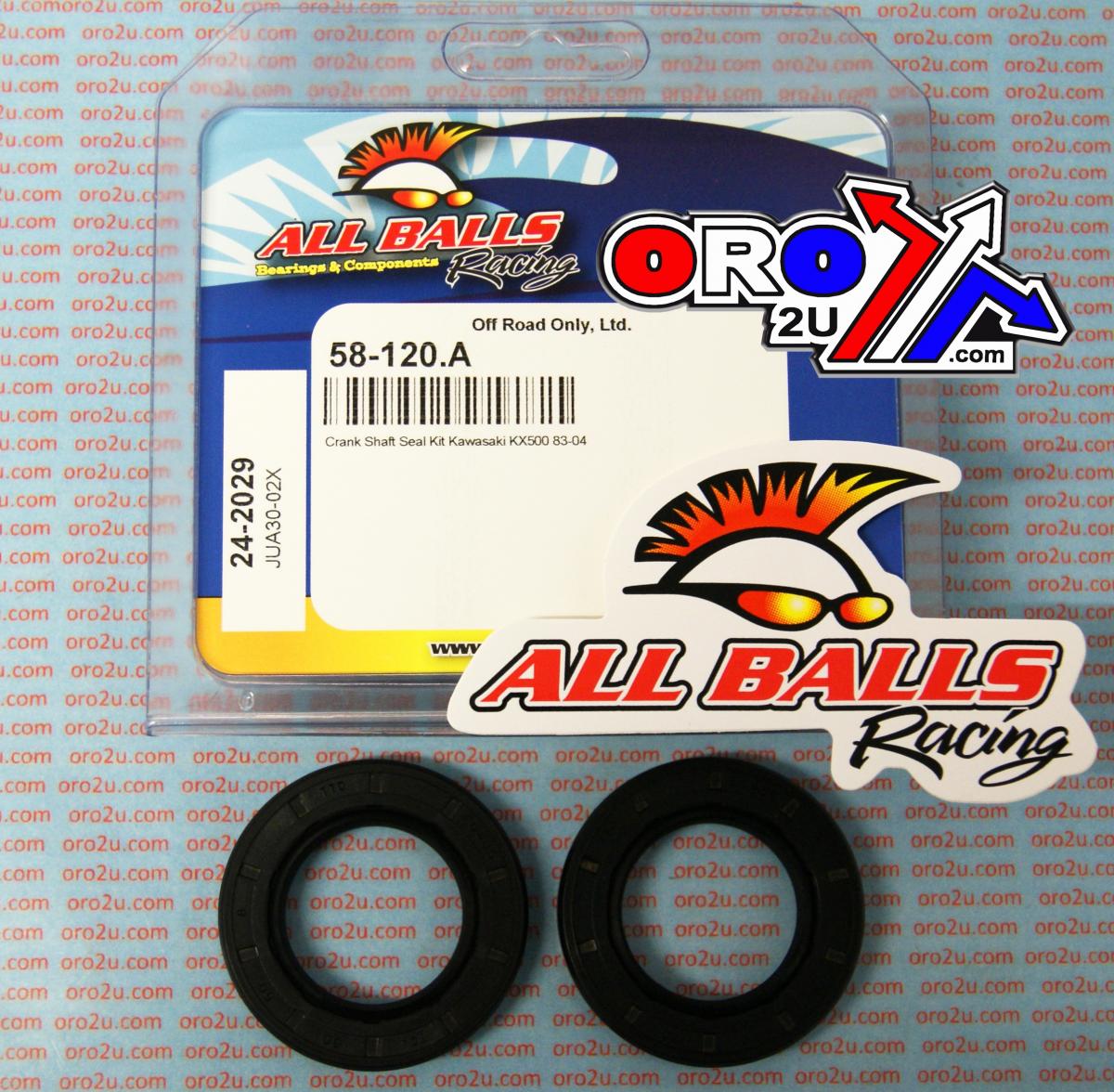 58-120.AThis crankshaft seal kit is designed for Kawasaki KX500 models from 1983 to 2004. Manufactured by ALLBALLS under part number 24-2029, the kit includes both the PTO and MAG seals, engineered to match OEM specifications for precise fitment. Featuring double lip PTFE sealing surfaces, the seals provide durability and reduced wear under dry-start conditions.