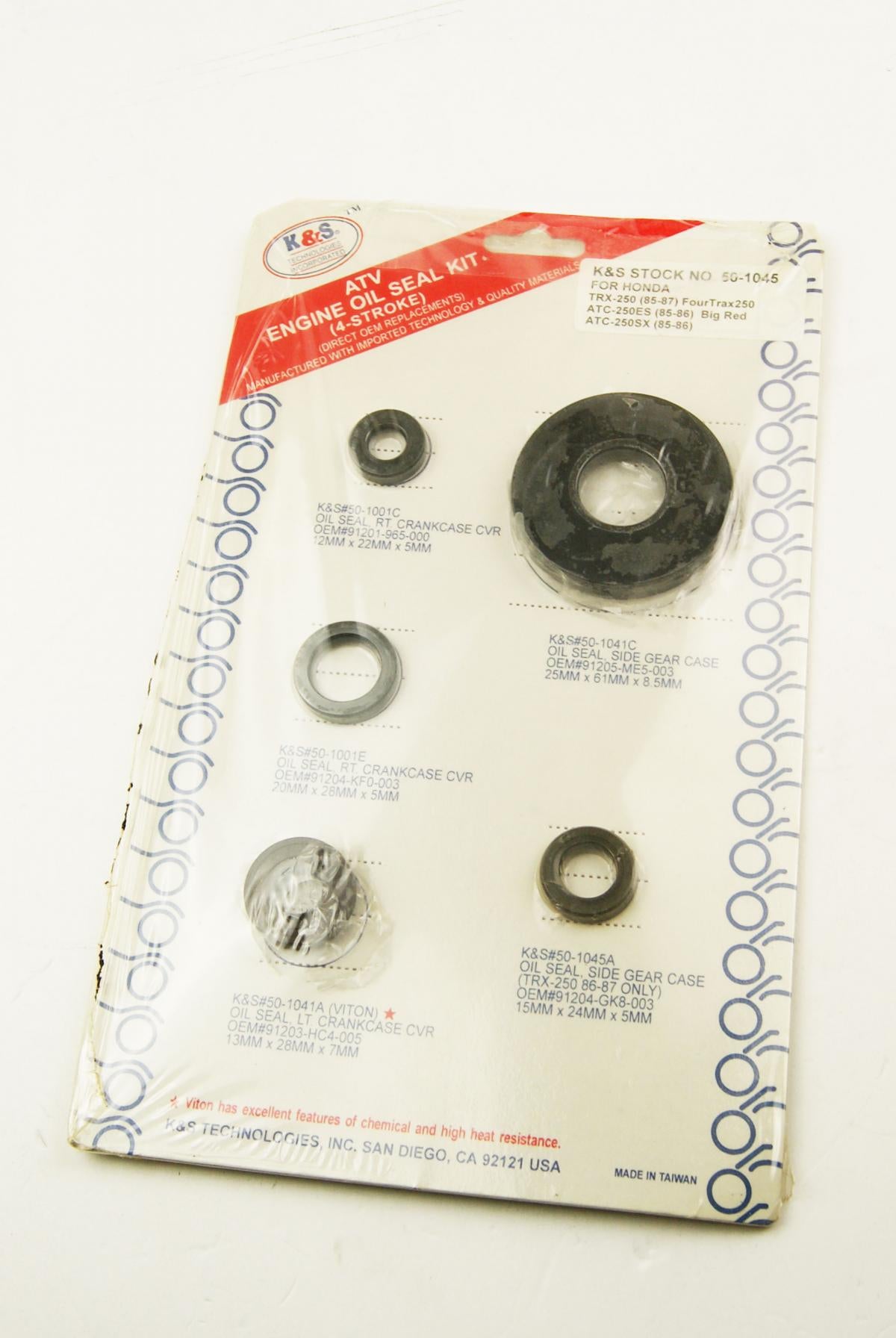 This is a complete direct OEM replacement kit from K&S Technologies, Inc. Includes all engine oil seals for a complete rebuild. Kit includes the 5 oil seals listed below: