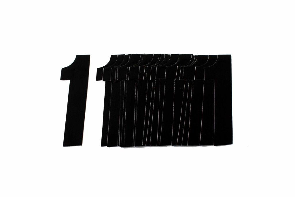 4.5" Race Numbers. Available in black or white. Numbers are available in a pack of20 per number or as a pack of 108 mixed 0 to 9.