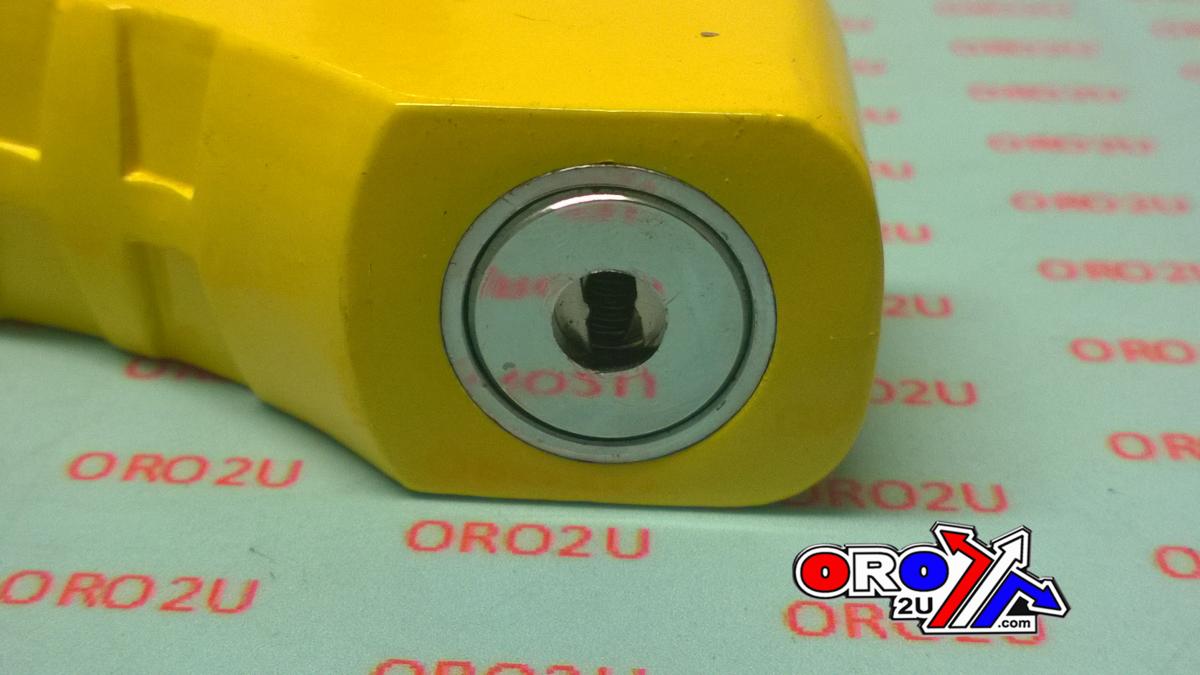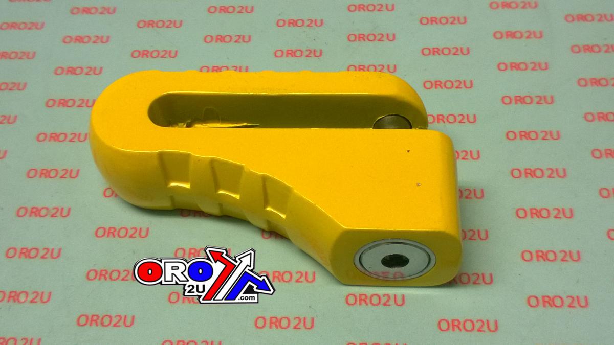66-102.YEThis disc lock features a 10mm hardened steel locking pin and a compact, impact-resistant die-cast steel body, offering effective immobilisation for motorcycles. Designed for high visibility and ease of use, it provides a strong deterrent against theft by preventing the movement of the bike without removing the lock or the wheel. Suitable for MX, trail, enduro, and road bikes.