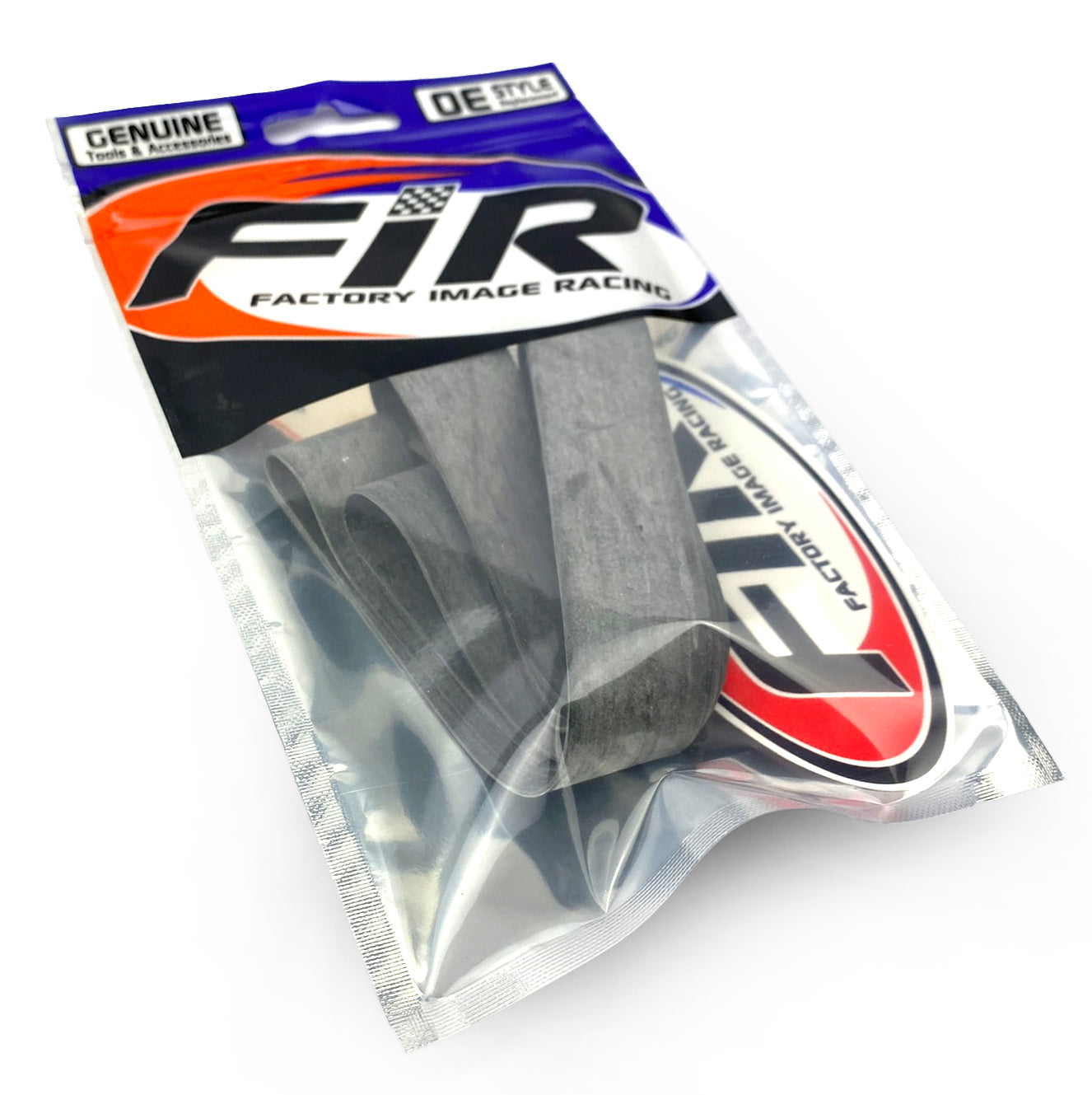 68-002.EAThis 25mm wide rim tape from Factory Image Racing is designed for 21-inch motorcycle rims and constructed from high-duty rubber to offer protection against tube chafing. With a thickness of 0.9mm and a center valve hole, it ensures proper fitment and function. Sold individually, this rim strip is intended for compatibility with a wide range of applications based on its standardized measurements.