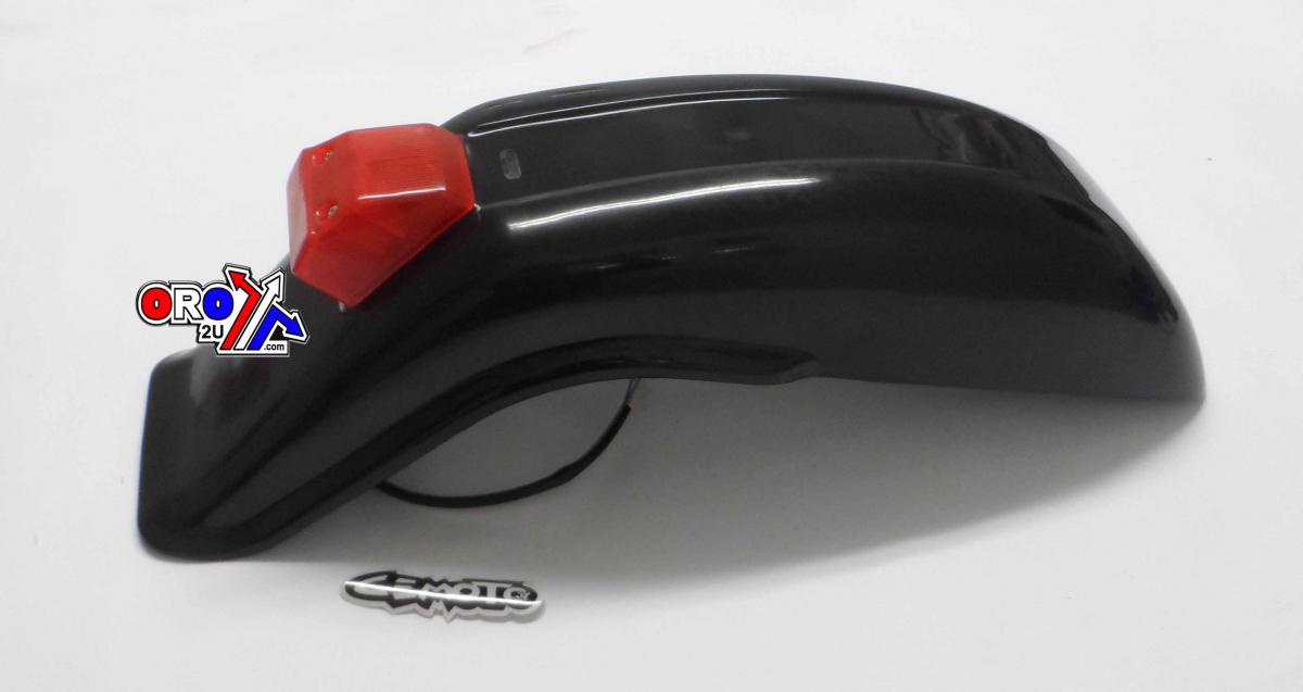 BLACK Enduro rear fender complete with tail light. Fits 125/250/500 Universal fitting. High impact plastic easy to cut with hot blade.