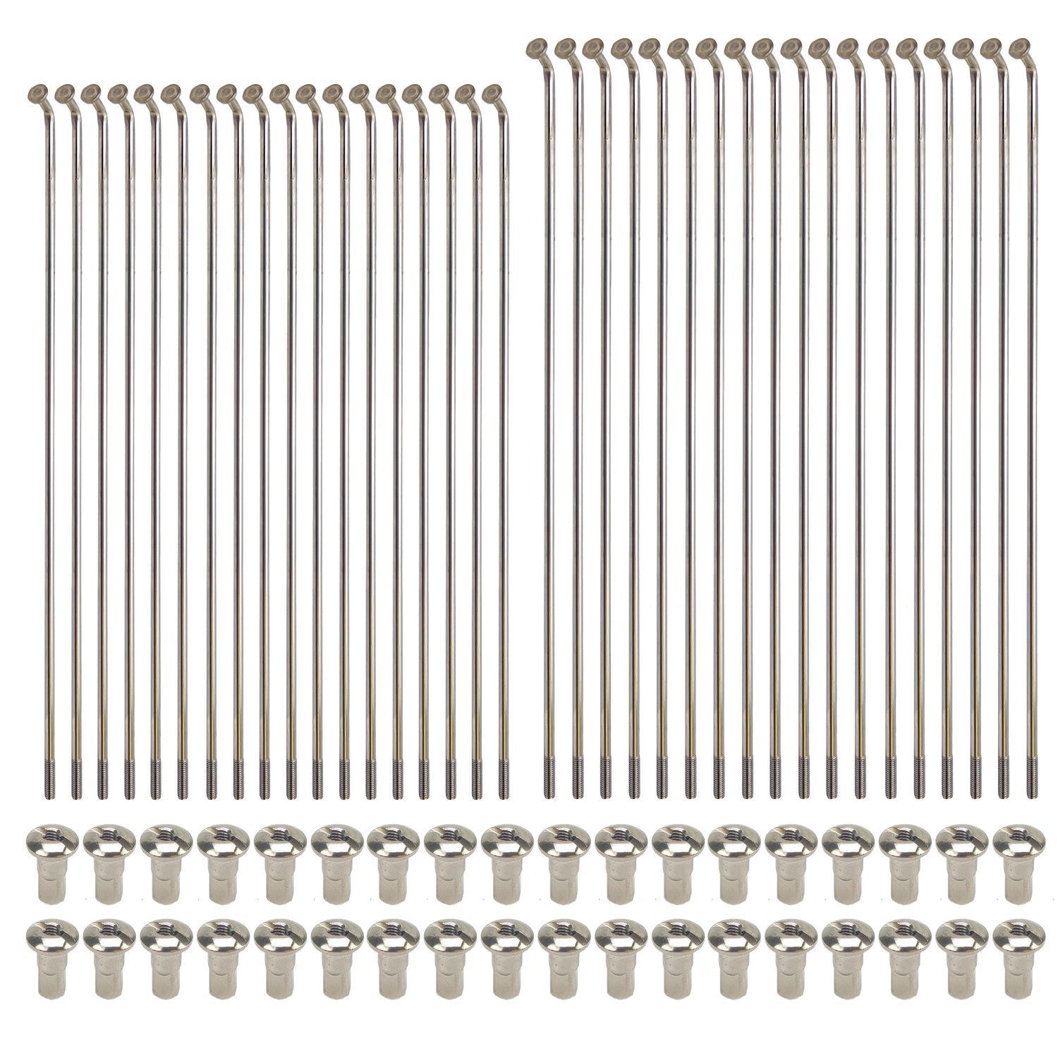 This spoke set has 36 spokes with nickel plated steel nipples.