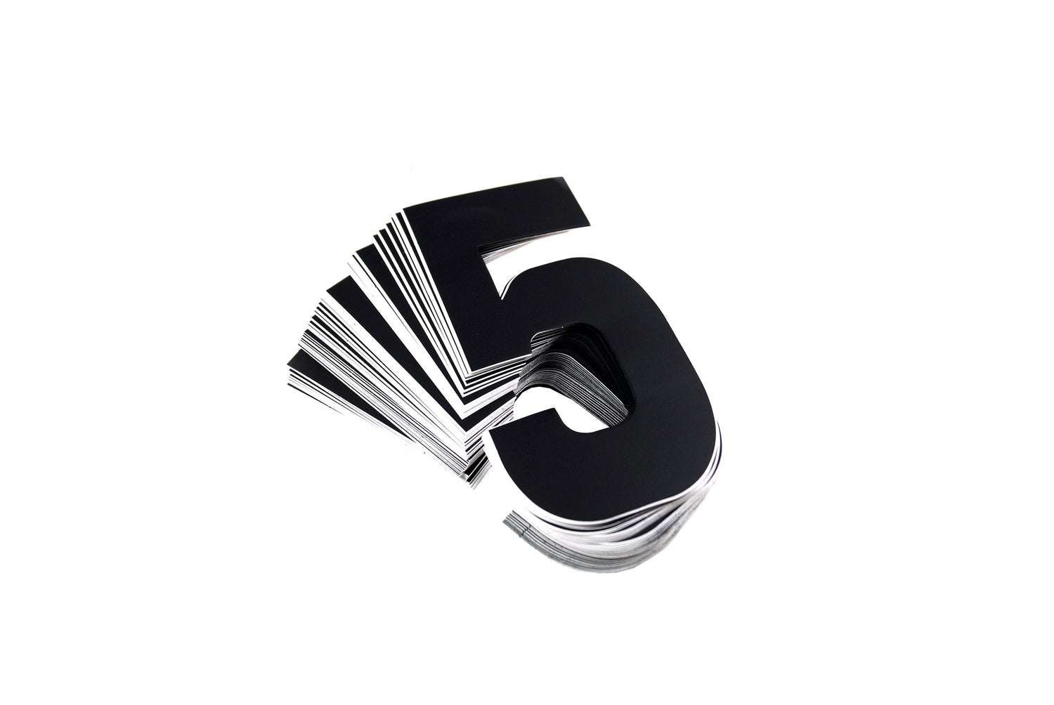 FIR Race Numbers - 5 Five - Black, Pack of 25 / 15cm 6 / Vinyl Sticker