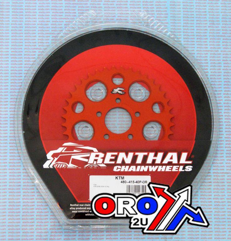Renthal Rear Sprocket Renthal 480, KTM 50 2010-2013 40t Orange, 480--415-40p-or