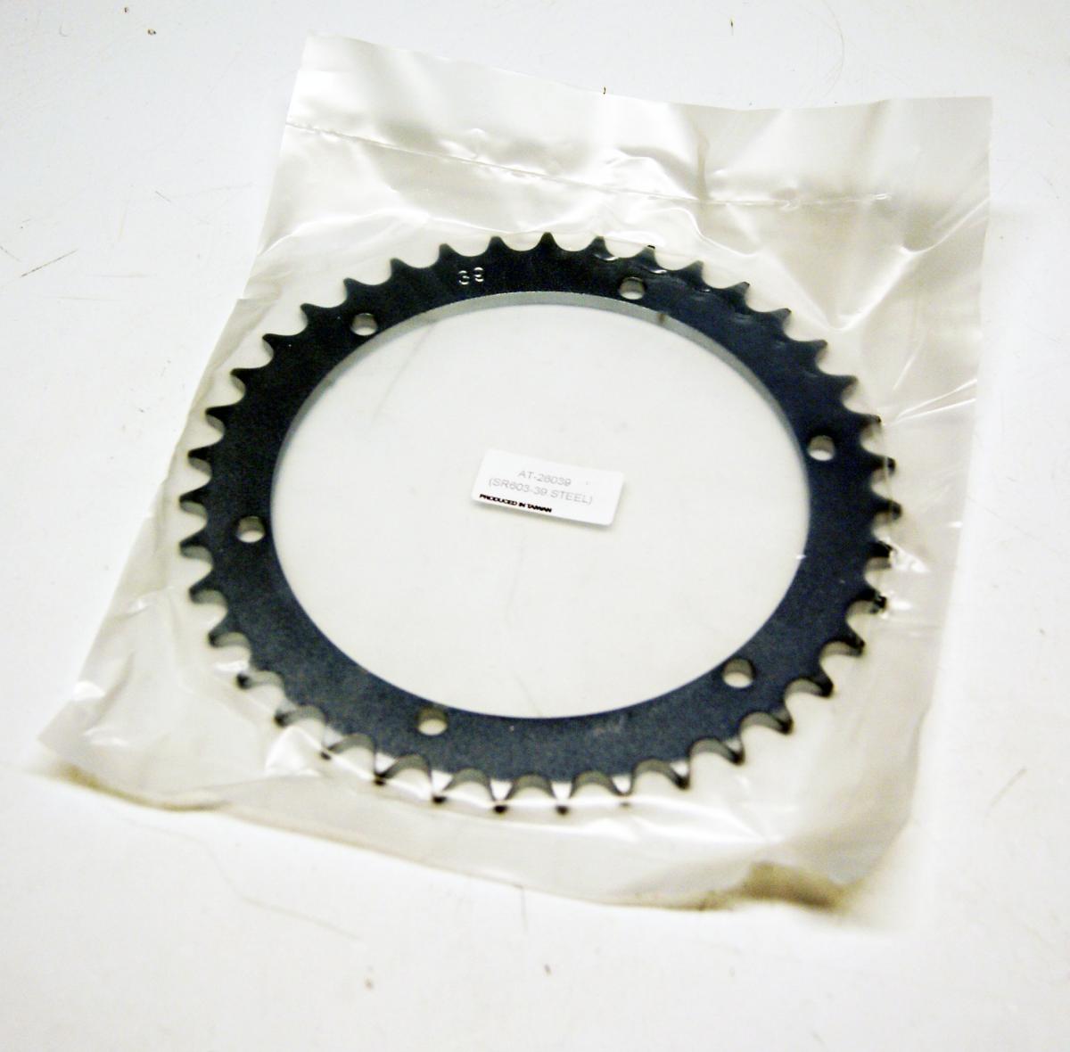 SR603-39.STEELThis rear steel sprocket features 39 teeth and is built for use with 520 chain systems. Manufactured from high-quality C45 high carbon steel, it offers a strong, durable solution for a wide range of Yamaha ATVs and motorcycles. Each sprocket is heat-treated, hand-finished, and sandblasted to reduce surface tension, with a black powder-coated finish for enhanced surface integrity. It complies with strict motorcycle industry compound modification standards.