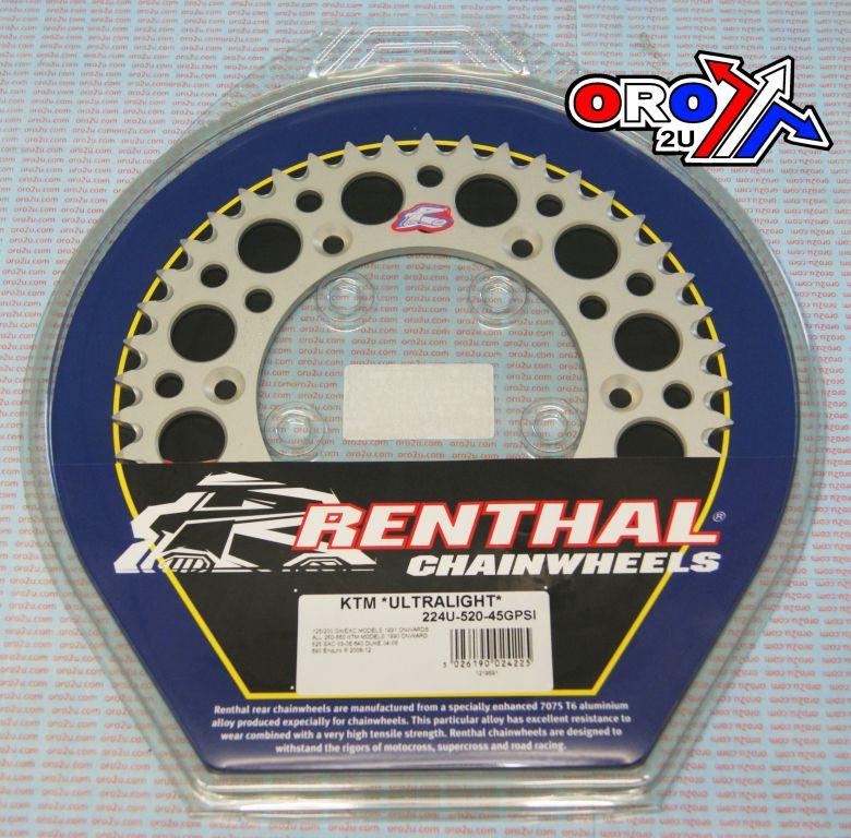 Renthal Rear Sprocket Alloy Renthal, Ultralite 224u-520-45gpsi Silver
