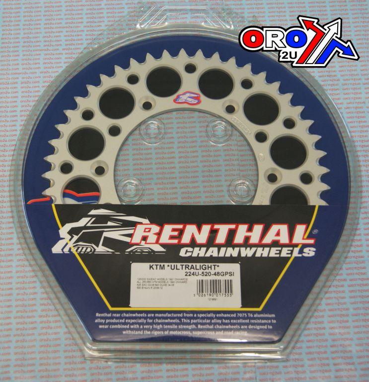 Renthal Rear Sprocket Renthal KTM, Ultralite 224u-520-48gpsi Silver, 224u-520-48gpsi