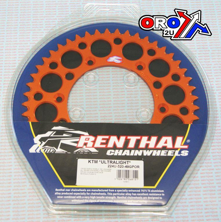Renthal Rear Sprocket Renthal KTM, Ultralite 224u-520-49gpor Orange, 224u-520-49gpor