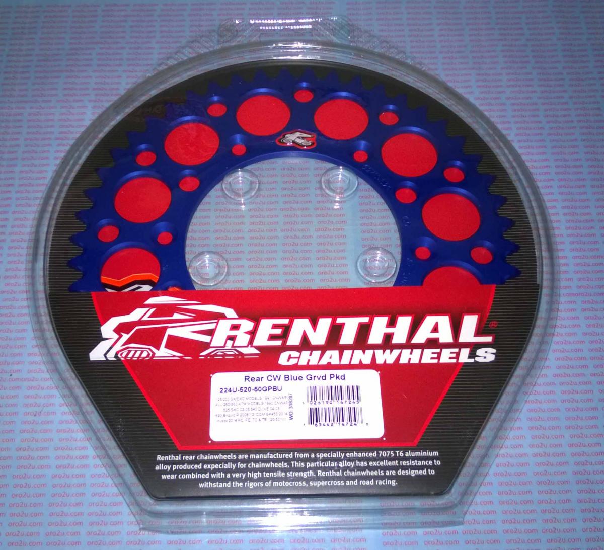 RENTHAL 224-520-50BU BLUE Rear Sprockets Hard Anodised Rear Chainwheels