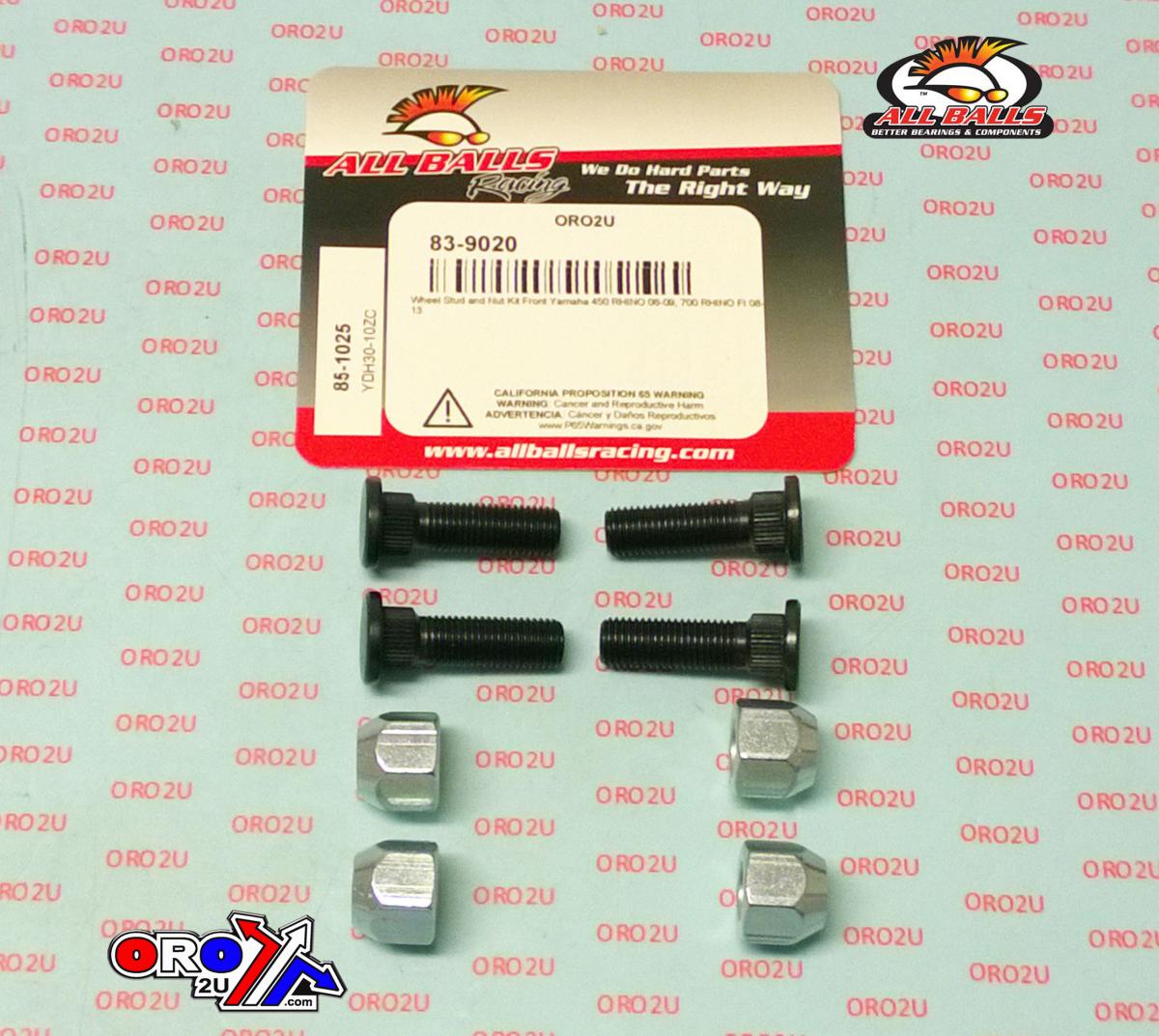 83-9020This wheel stud and nut kit (ALLBALLS 85-1025) is designed for front wheel applications on select Yamaha Rhino models. The kit includes four wheel studs and four nuts, providing a reliable solution for securing front wheels on 450 and 700 series Rhino utility vehicles.