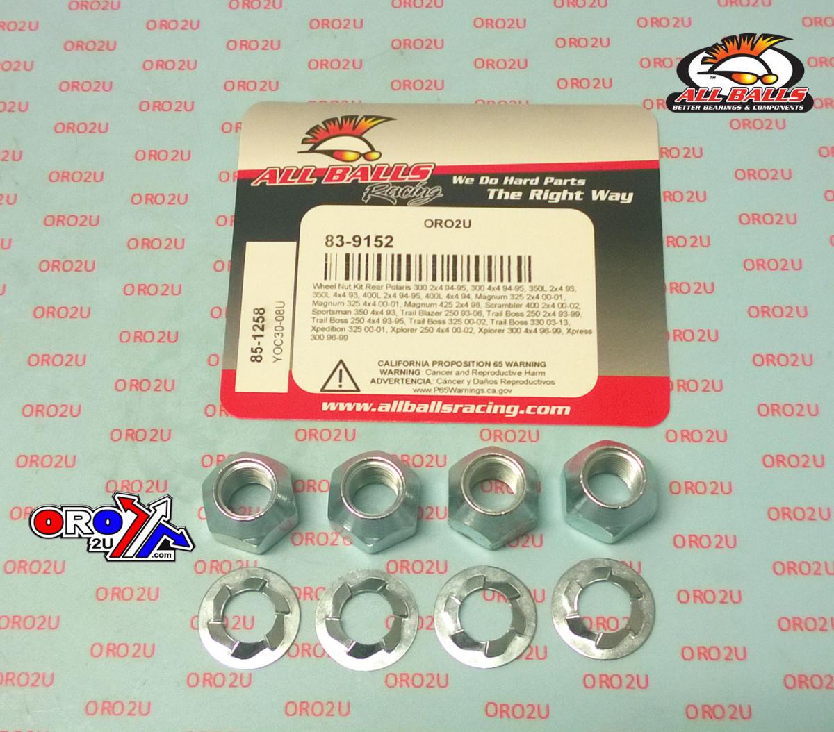 All Balls Racing Wheel Nut & Washer Kit Rear, Allballs 85-1258, 7542714, Polaris 300 2x4 94-95, 300 4x4 94-95, 350l 2x4 93, 350l 4x4 93, 400l 2x4 94-95, 400l 4x4 94, Magnum