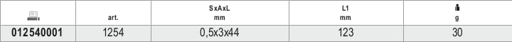 - Size (SxAxL): 0.5mm x 3mm x 44mm