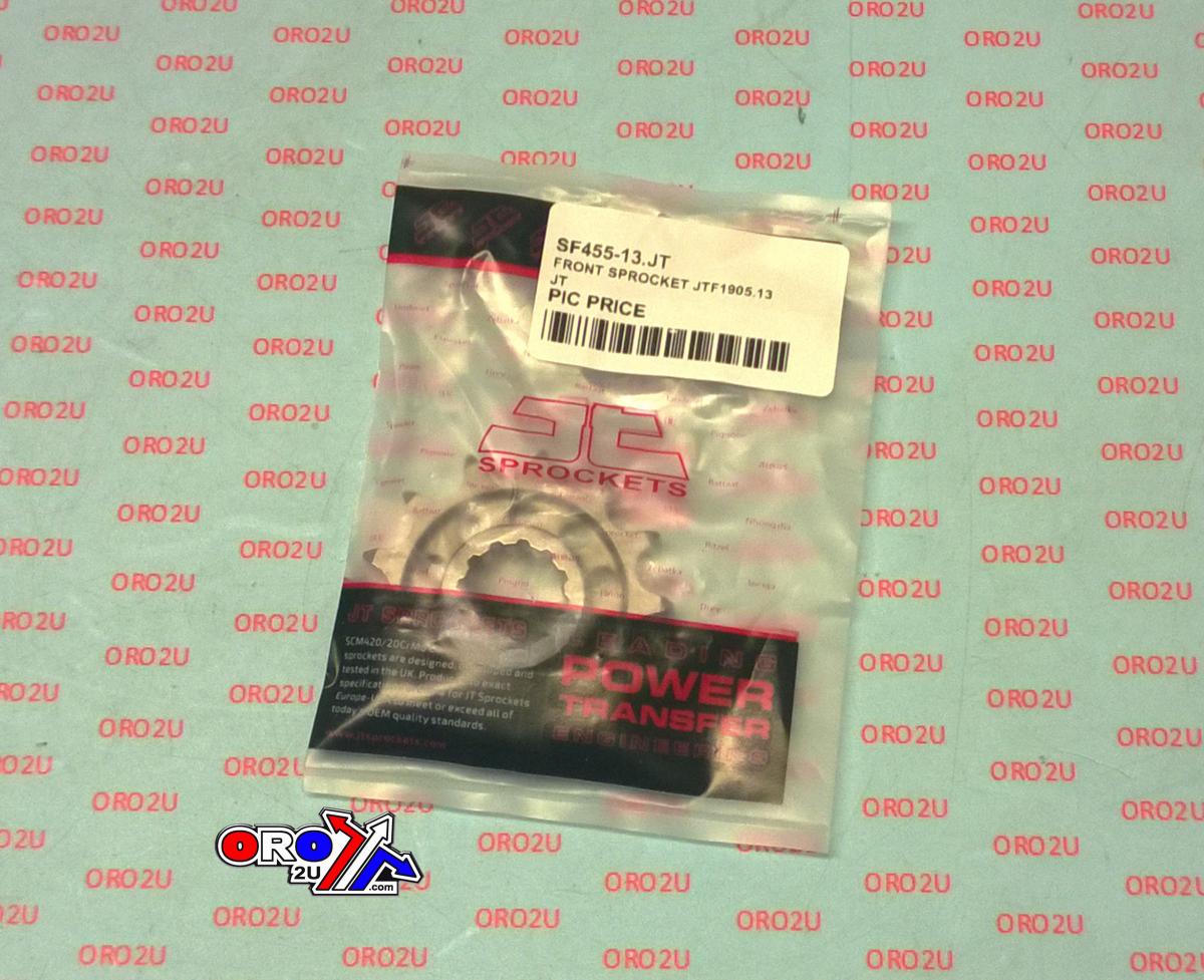 SF455-13.JTThe JT Sprockets JTF1905.13 is a 13-tooth front drive sprocket designed for use with 85cc motocross bikes from KTM, Husqvarna, and Gas Gas. Engineered for durability and performance, it is suitable for bikes using a 428 chain.