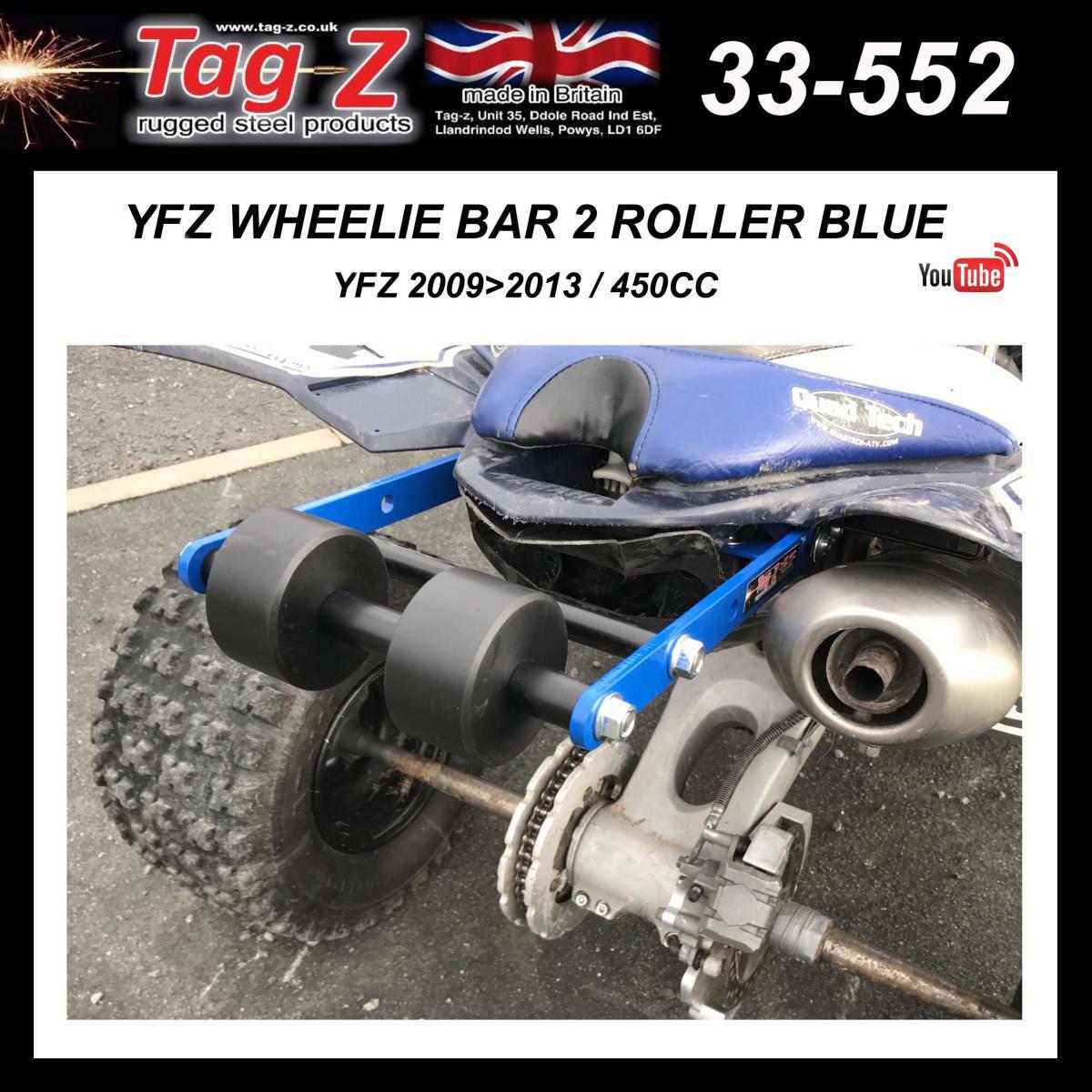 Tag-z Yfz Wheelie Bar 2 Roller Blue, ATV Quad Wheelie Saver / Catch, 3.4kg 34x22x7cm / Yfz 2009>2013