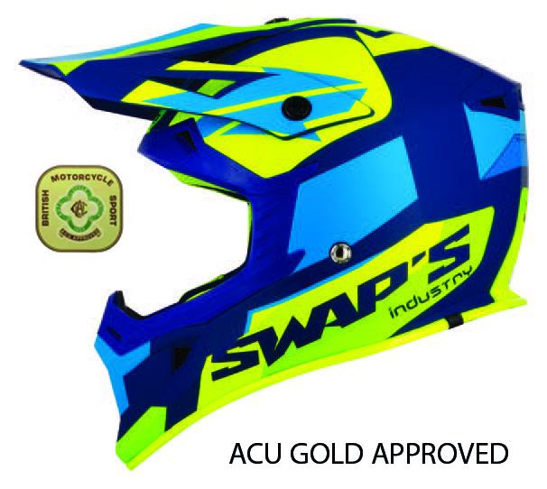 Swaps MX Helmet Xl 62 Blue/yellow, Swap's S818 Full Face Csw3g4105, !! Acu Gold Approved !!