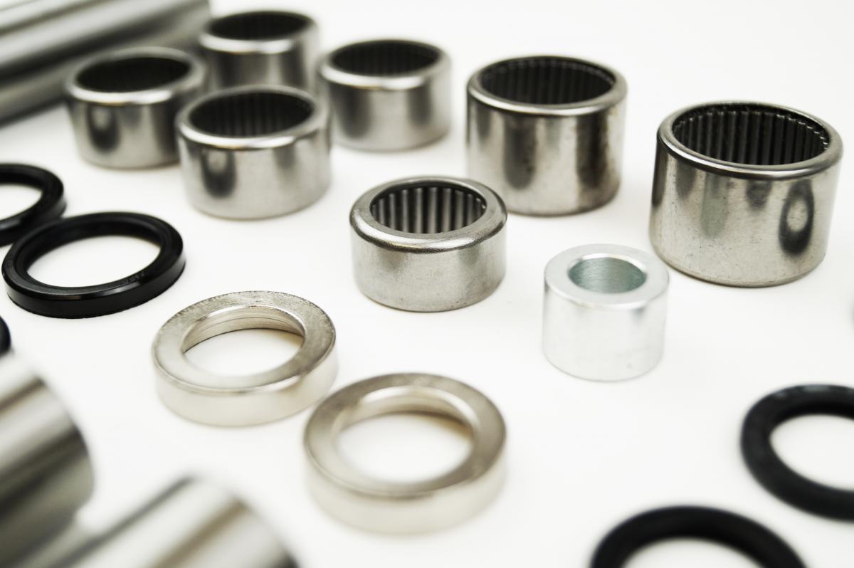 - Each kit includes linkage bearings, shafts, seals, spacers, and lower shock bearings.