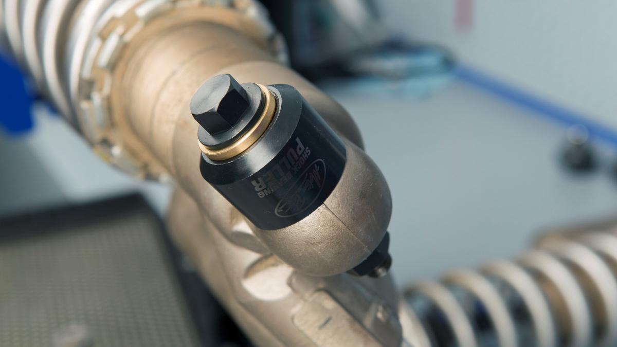 - Reversible puller cup with cutaway fits a wide variety of shock reservoir and compression adjuster configurations.