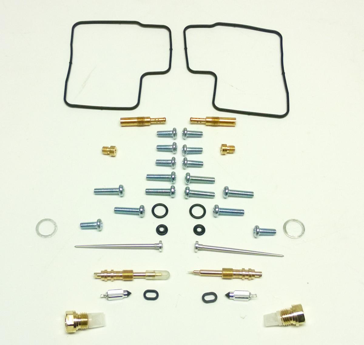 - Kit includes all O-rings, gaskets, jets, needle, mixture screw, float bowl screws, float valve needle and seat.