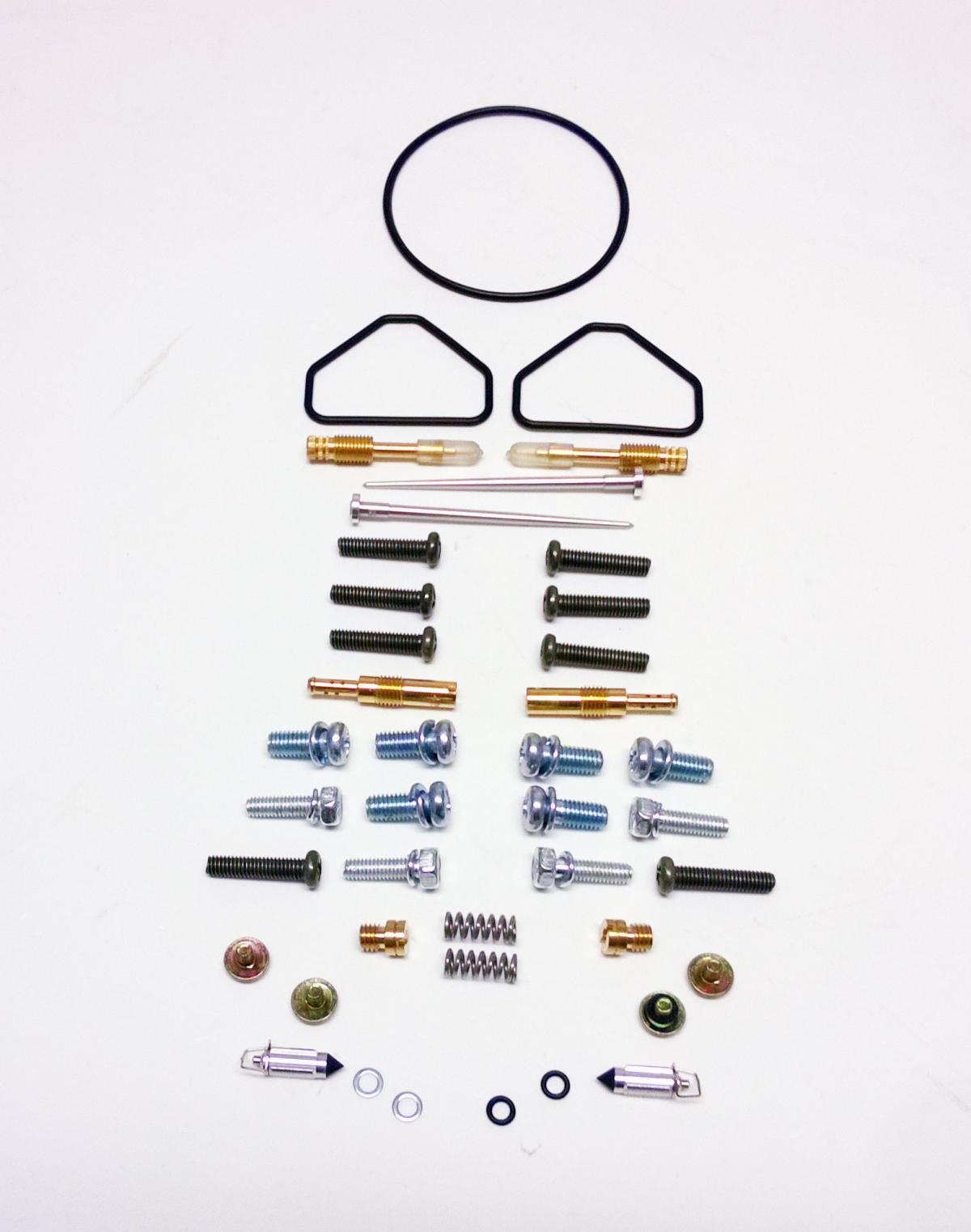 - Kit includes all O-rings, gaskets, jets, needle, mixture screw, float bowl screws, float valve needle and seat.