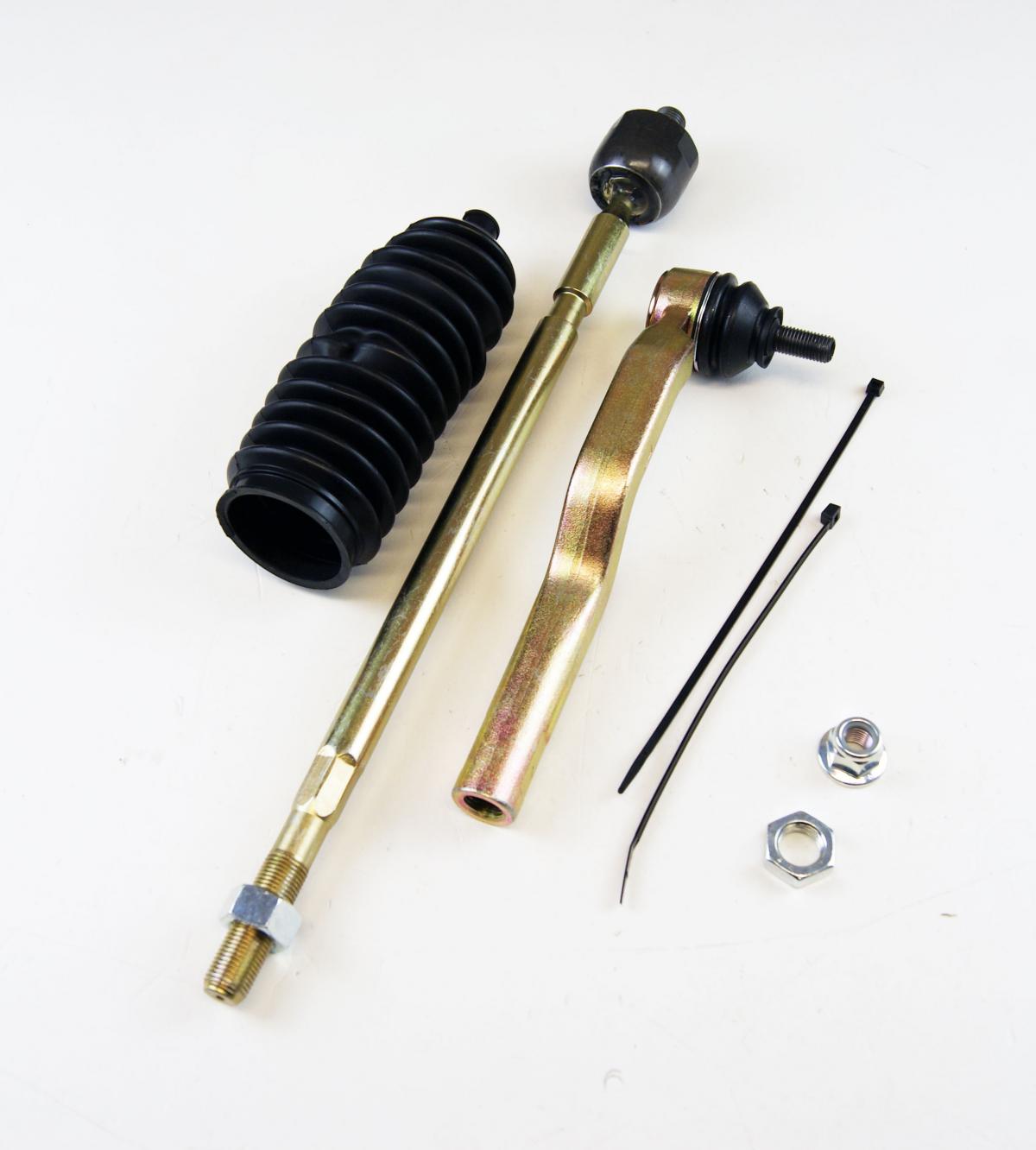 This kit includes both inner and outer tie rod ends, with the shaft that connects to the steering rack and the outer tie rod end. It also contains a boot and required hardware for the left (driver) side.