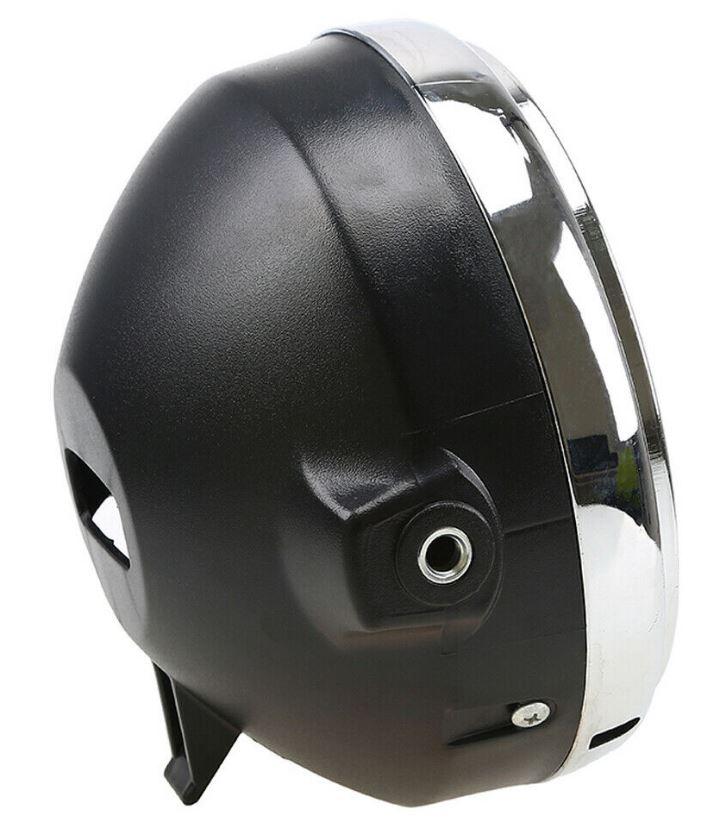 44-5187.FIRThis universal Moto Chrome Halogen Headlight Headlamp is designed to provide high-quality lighting performance for various motorcycles, offering a sleek chrome-plated casing with a reflective interior. It features a halogen bulb and is engineered to meet or exceed OEM specifications for a perfect fit and reliable operation. The headlamp is compatible with multiple Honda models, providing a direct OEM replacement with stock mounting locations for easy installation.