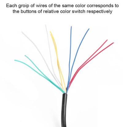 - Blue Button: Latching action, open circuit when OUT, closed circuit when pushed in.