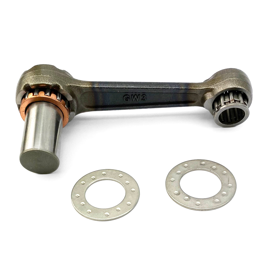 - Complete assembly: rod, crankpin, crankpin bearing, top end bearing, and thrust washers (if needed)