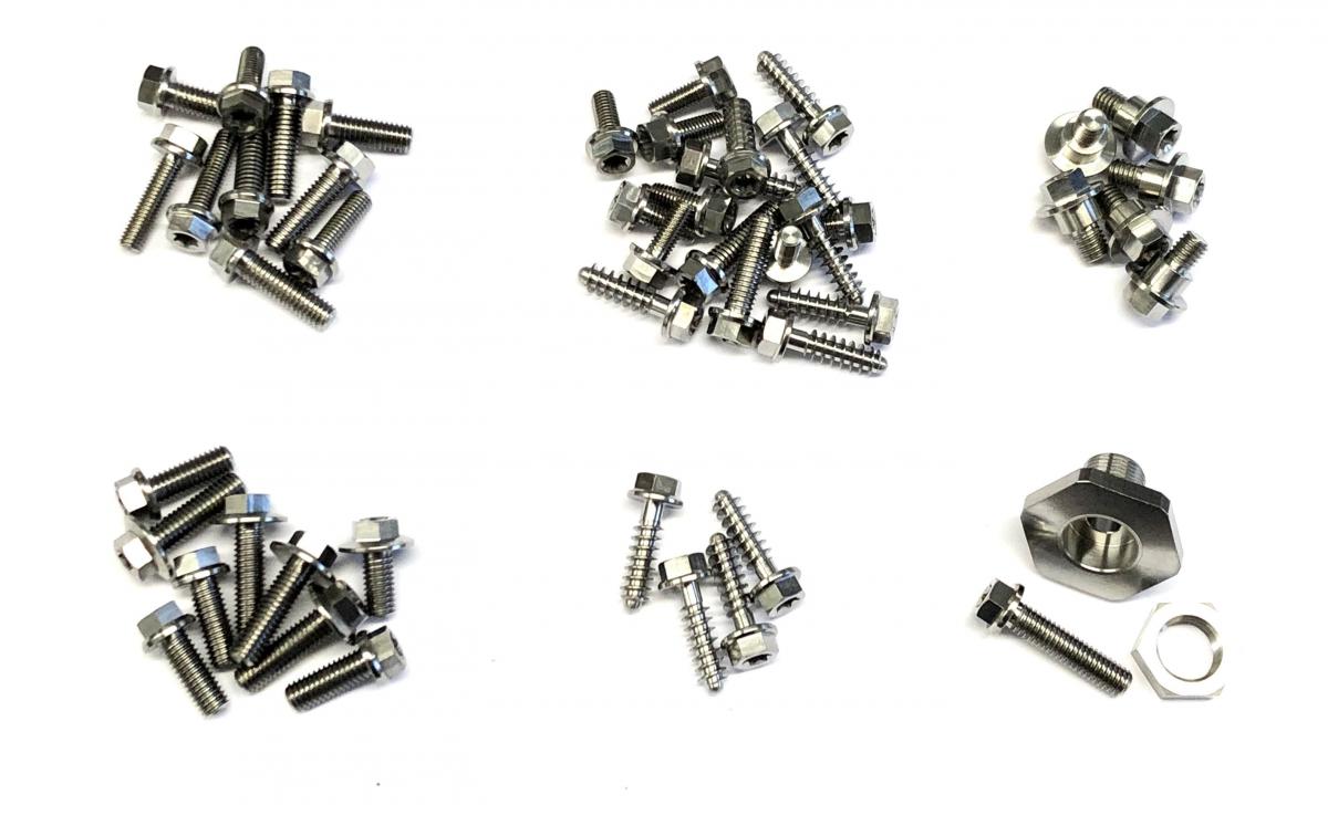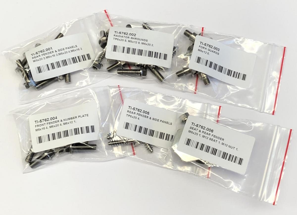 Description: All hardware has an 8mm spanner fitment, no changing sockets. The kit contains 45 items organized into the following bags: