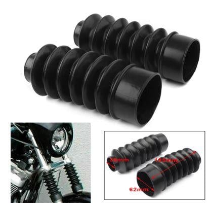43-205.BK.06.185High-quality rubber fork gaiters designed to protect front shock absorbers on Harley-Davidson motorcycles. These gaiters help maintain optimal performance by shielding the shocks from dust and debris while preventing oil leakage.