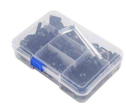 - Package Included: 190PCS (74 Bolts and 116 Accessories) in a plastic box.