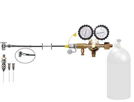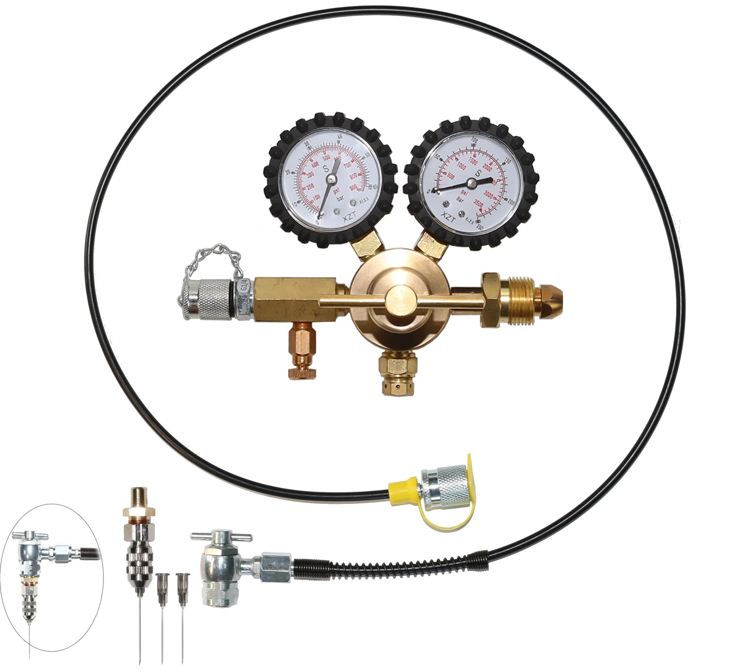 - 3600 PSI S3 Nitrogen Regulator with Schrader 556 High Pressure Strut Coupler for no air loss