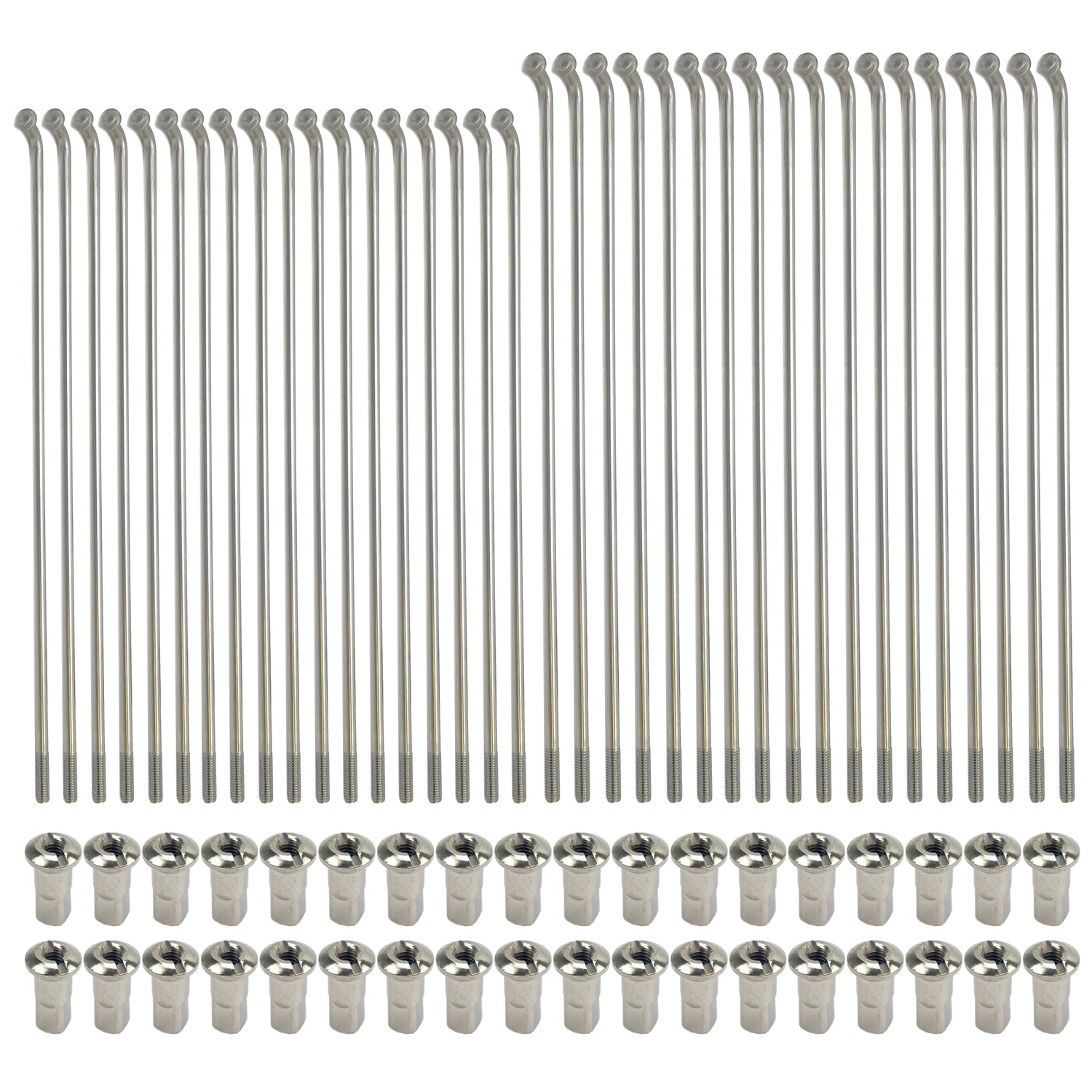 This spoke set has 36 spokes with spoke nipples.