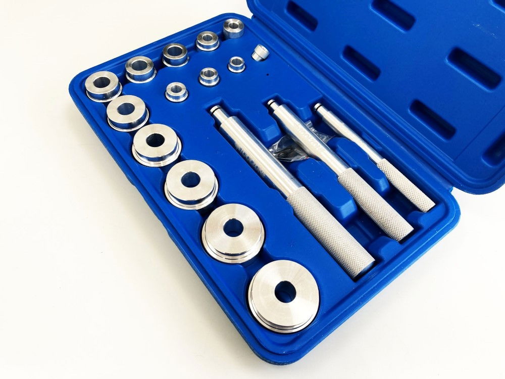 - 17-piece set for bush, bearing race, and seal installation or removal