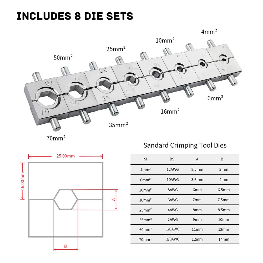 Dirt Racing Battery Copper Terminal Adjustable Hydraulic Crimping Tool Handheld 4-70mm2