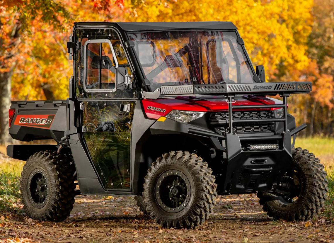When the weather turns harsh, you need more than just a UTV. You need SuperATV's Polaris Ranger 1000 Convertible Cab Enclosure Doors to keep you comfortable and productive. These full, lightly-tinted doors shield your cab from rain, dust, snow, and wind, ensuring you can work or ride in any weather condition. Crafted from robust polycarbonate material, they provide superior protection against trail debris and elements, making them essential for every season.